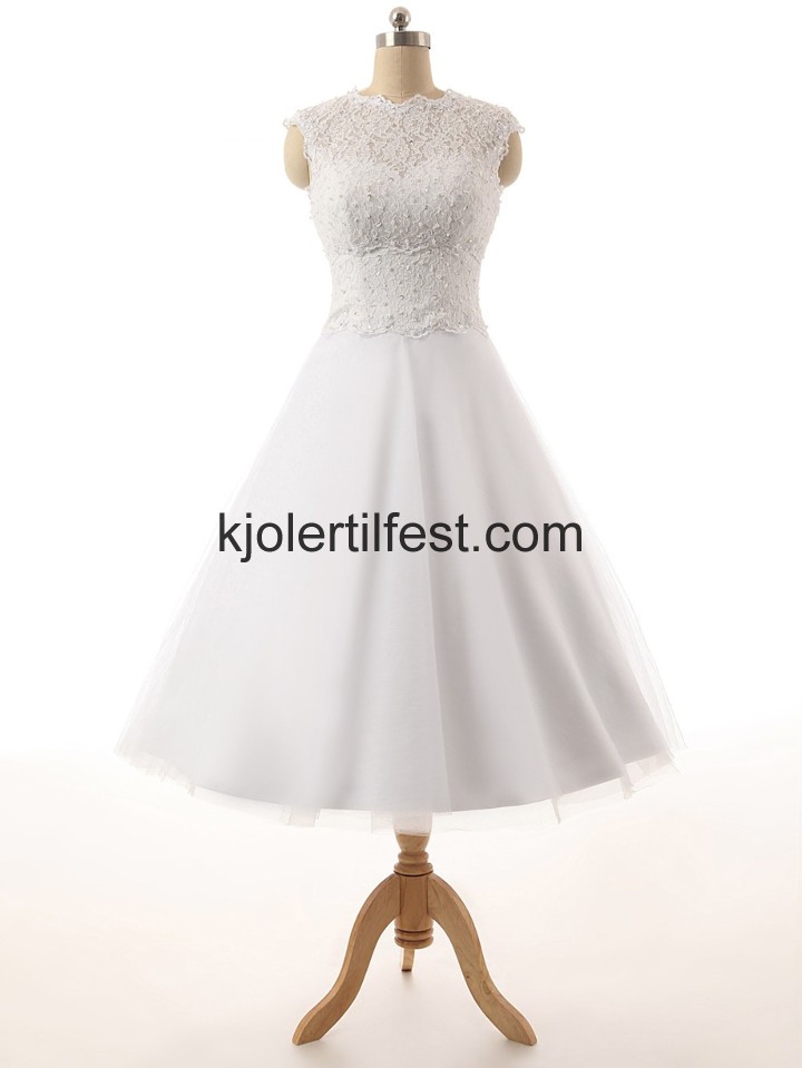 A-Linje Stoppet Hvit Kne-lengde Brudekjoler