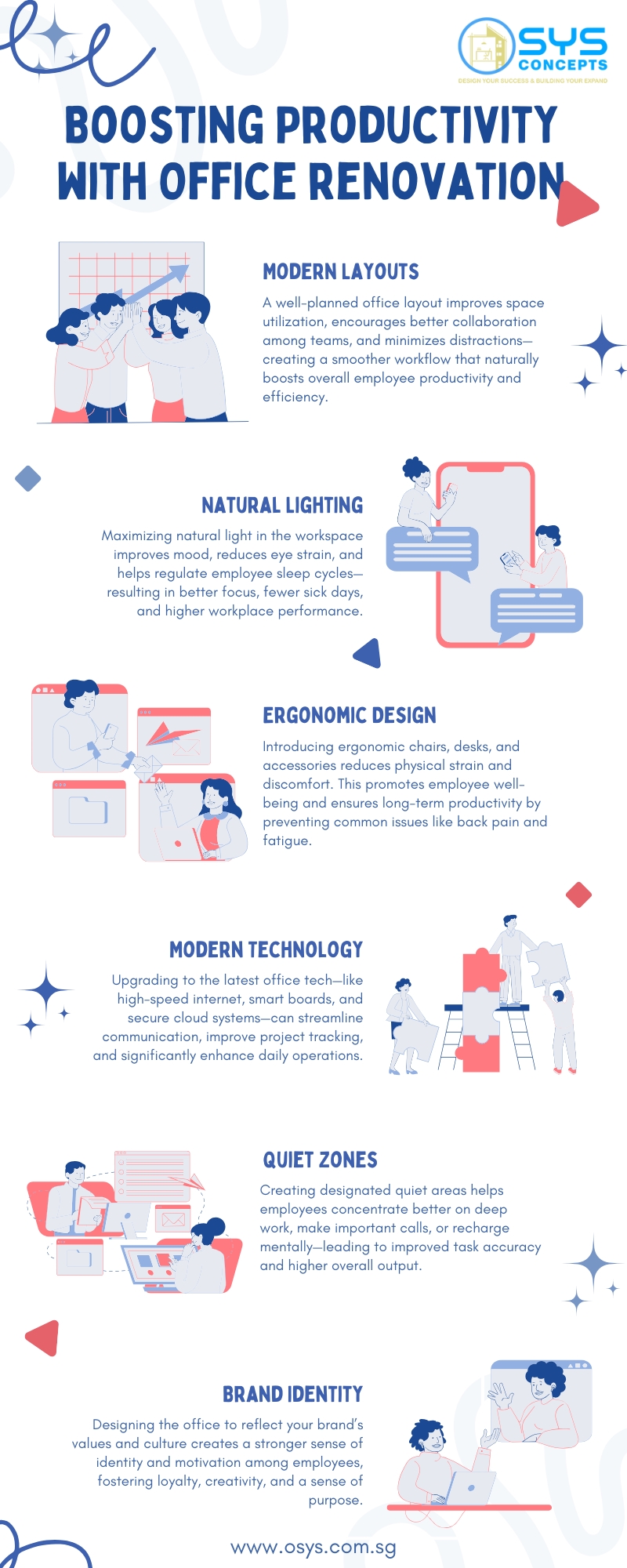 Boosting productivity with an office renovation Company involves more than just aesthetics. A well-designed space improves workflow, encourages collaboration, and supports employee well-being. From smart layouts and ergonomic furniture to better lighting and quiet zones, each element plays a role in enhancing focus and efficiency. A professional office renovation company can help you create a workspace that inspires performance and growth.