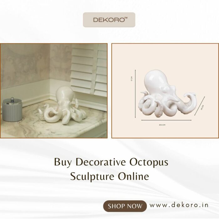 Add a unique touch to your space with a decorative octopus sculpture. Its intricate design and artistic appeal make it a perfect statement piece for your home or office. Whether placed on a shelf or as a centerpiece, this sculpture adds a marine-inspired charm. Shop online now!