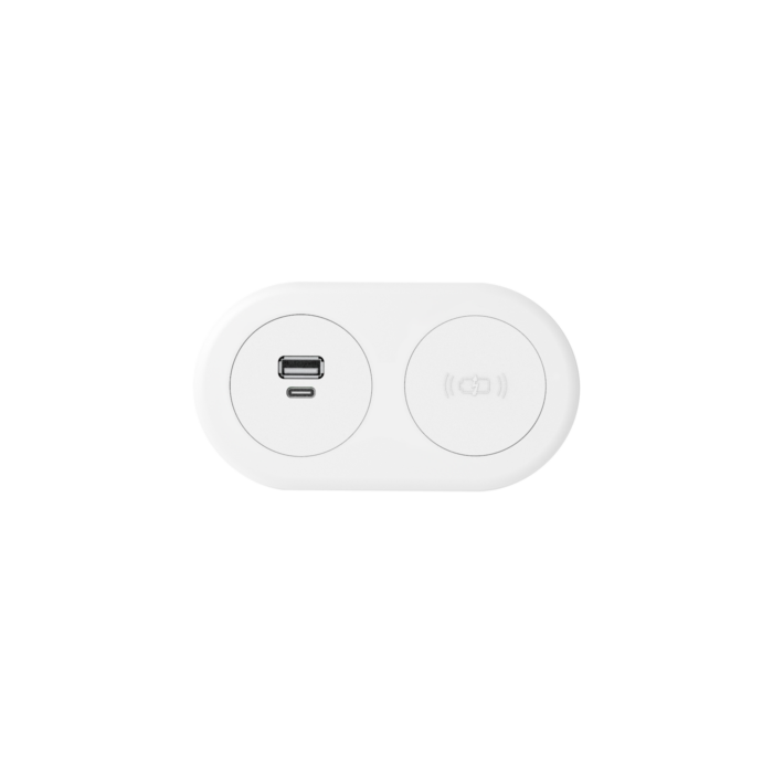 CMS Echo series delivers the latest charging technology to empower engaging and connected spaces within the commercial workplace, integrating into personal workstations, soft-seating and collaborative spaces. This module has both USB A/C Charging and Wireless Charging. The module has a shallow depth of 46mm, with easy top-side installation without fastening from the bottom