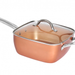 A frying pan, skillet, or pan is a pan used for frying, searing, and browning food. It is usually 20 to 30 cm (8 to 12 inches) in diameter, with relatively low flared sides. They are made from a variety of materials such as aluminum alloy, copper, ceramic, and more, and some are non-stick coated for easy cleanup. Frying pans are used for frying food over moderate to high heat, so they should be thick enough to conduct heat evenly.