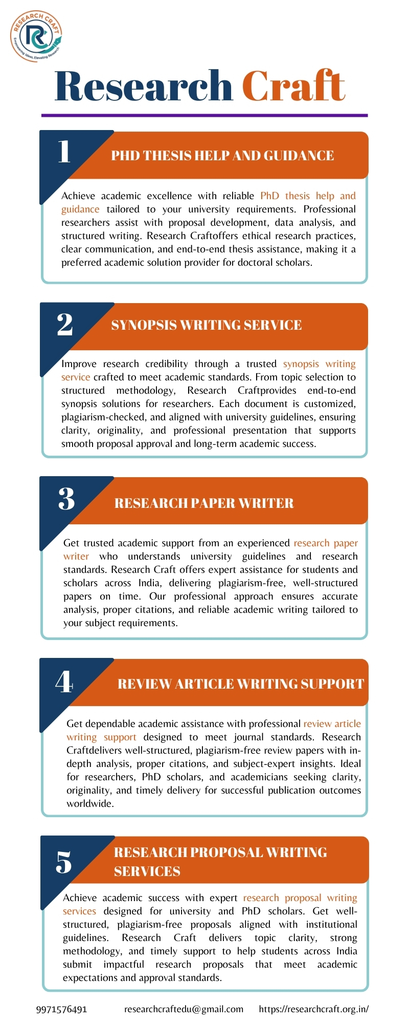 Achieve academic success with expert research proposal writing services designed for university and PhD scholars. Get well-structured, plagiarism-free proposals aligned with institutional guidelines. Research Craft delivers topic clarity, strong methodology, and timely support to help students across India submit impactful research proposals that meet academic expectations and approval standards.