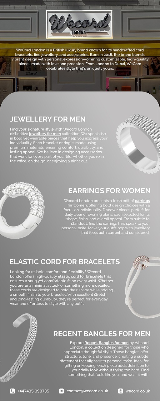 Looking for reliable comfort and flexibility? Wecord London offers high-quality elastic cord for bracelets that ensures a snug yet comfortable fit on every wrist. Whether you prefer a minimalist look or something more detailed, these cords are designed to hold their shape while adding a smooth finish to your bracelet. With excellent stretch and long-lasting durability, they’re perfect for everyday wear and effortless to style with any outfit.