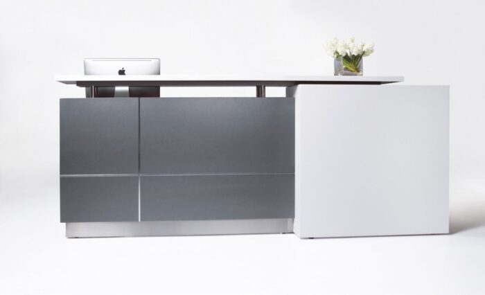- Counter Body – Metallic grey with matt white feature panel 2 Pack finish with aluminium trim lines and stainless steel kick plate