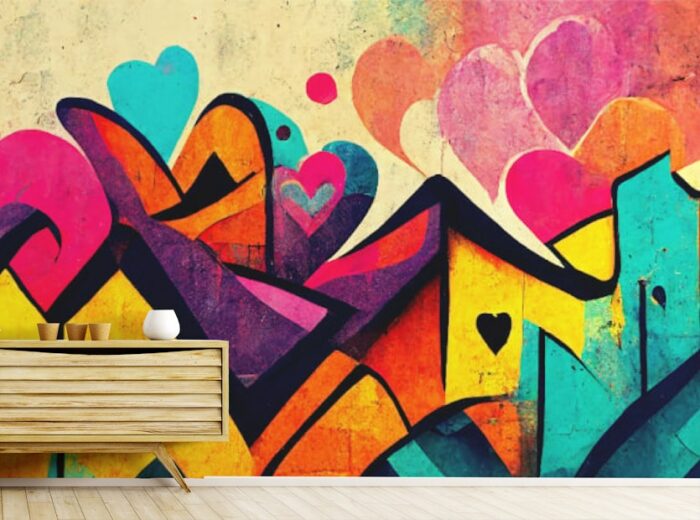 Add an urban edge to your space with graffiti wallpaper. Bold, vibrant, and full of attitude, this design brings street art indoors, perfect for creating a statement wall that pops. Ideal for modern and industrial interiors.