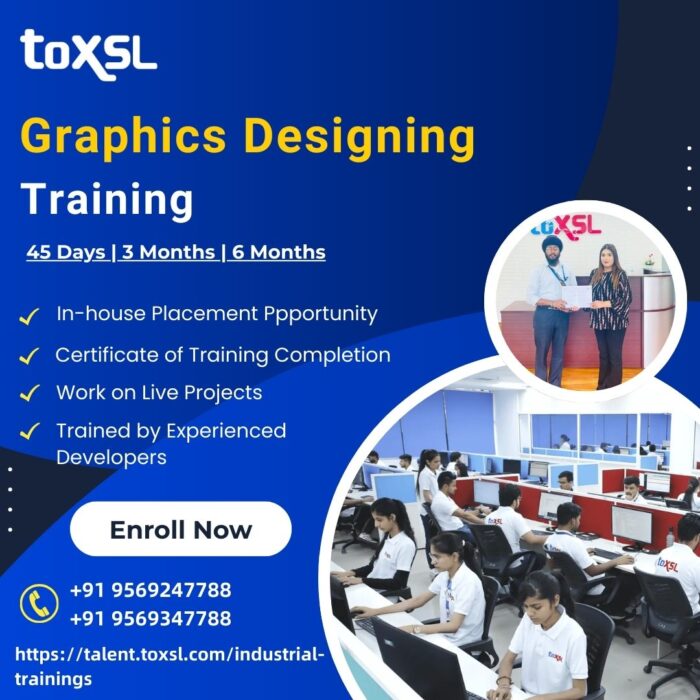 Start your creative journey with Graphics Designing Training in Mohali and build high-demand design skills for top industry jobs. Learn branding, layouts, digital illustrations, and more with real-time projects and expert guidance. Boost your career with professional certification. Join ToXSL Technologies today and become a skilled designer. Contact us now!