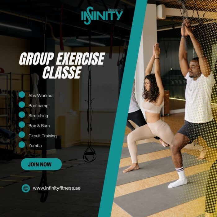 Get fit and stay motivated with high-energy group exercise classes at Infinity Fitness in Ajman! Our classes offer a fun and supportive environment where you can burn calories, build strength, and boost your stamina alongside like-minded individuals. Led by certified instructors, we offer a variety of sessions including cardio, strength training, HIIT, functional workouts, and more—designed for all fitness levels. Whether you’re a beginner or looking to take your workouts to the next level, our group classes keep you inspired, accountable, and moving toward your fitness goals. Join the movement—sign up for a class today and experience fitness like never before!