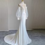 High Collar Applique Lace Satin Mermaid Wedding Dresses with Detachabl– promboutiqueonline