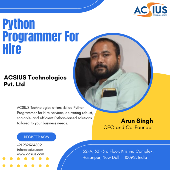 ACSIUS allows businesses to hire dedicated Python developer for building scalable, secure, and high-performance web and data-driven applications. Their expert Python developers specialize in backend development, automation, API integrations, and frameworks like Django and Flask. Ideal for startups, SMEs, and enterprises, ACSlUS provides reliable Python talent to deliver custom solutions, streamline workflows, and support business growth with clean code, efficient architecture, and timely project delivery.