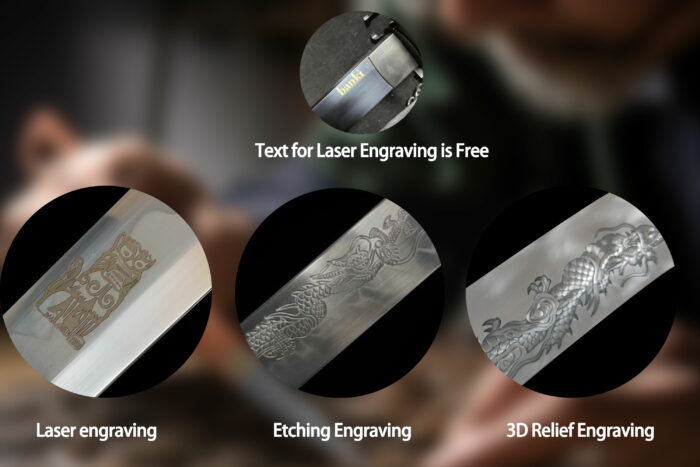 At our studio, we offer custom engraving services that stay true to tradition while embracing modern technology. Whether you’re commemorating a milestone, crafting a cosplay masterpiece, or honoring family heritage, our Horimono engraving allows you to make your katana truly your own.