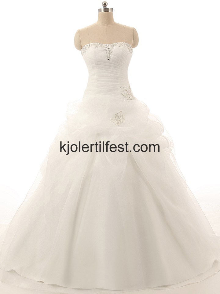Hvit A-Linje Perler Organza Brudekjoler