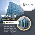 Nationwide Curtain Wall offers high-quality aluminium curtain walling and Unitised Curtain Walling systems designed for modern buildings. Our solutions offer strength and style while allowing installation with minimal disruption, which is perfect for commercial projects. Contact Nationwide Curtain Wall today for expert curtain walling solutions!