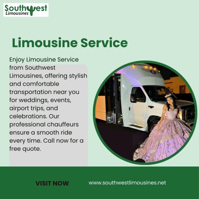 Enjoy Limousine Service from Southwest Limousines, offering stylish and comfortable transportation near you for weddings, events, airport trips, and celebrations. Our professional chauffeurs ensure a smooth ride every time. Call now for a free quote.