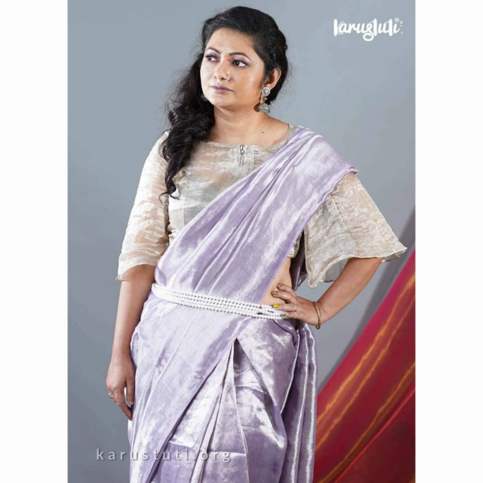 Introducing the Twill Metallic Linen Handloom Saree from the prestigious brand Karustuti! Prepare to dazzle with this exquisite Lilac saree adorned with stunning Silver metallic accents. Crafted with love, this handloom saree is a true masterpiece that will make you stand out in any occasion.