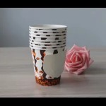 The paper coffee cup with handle is used to hold hot beverages such as coffee, tea and hot chocolate. The polyethylene lining helps with heat resistance and prevents leakage. In addition to our standard stock designs, we also offer a 100% custom paper coffee cup with handle that covers the entire range.