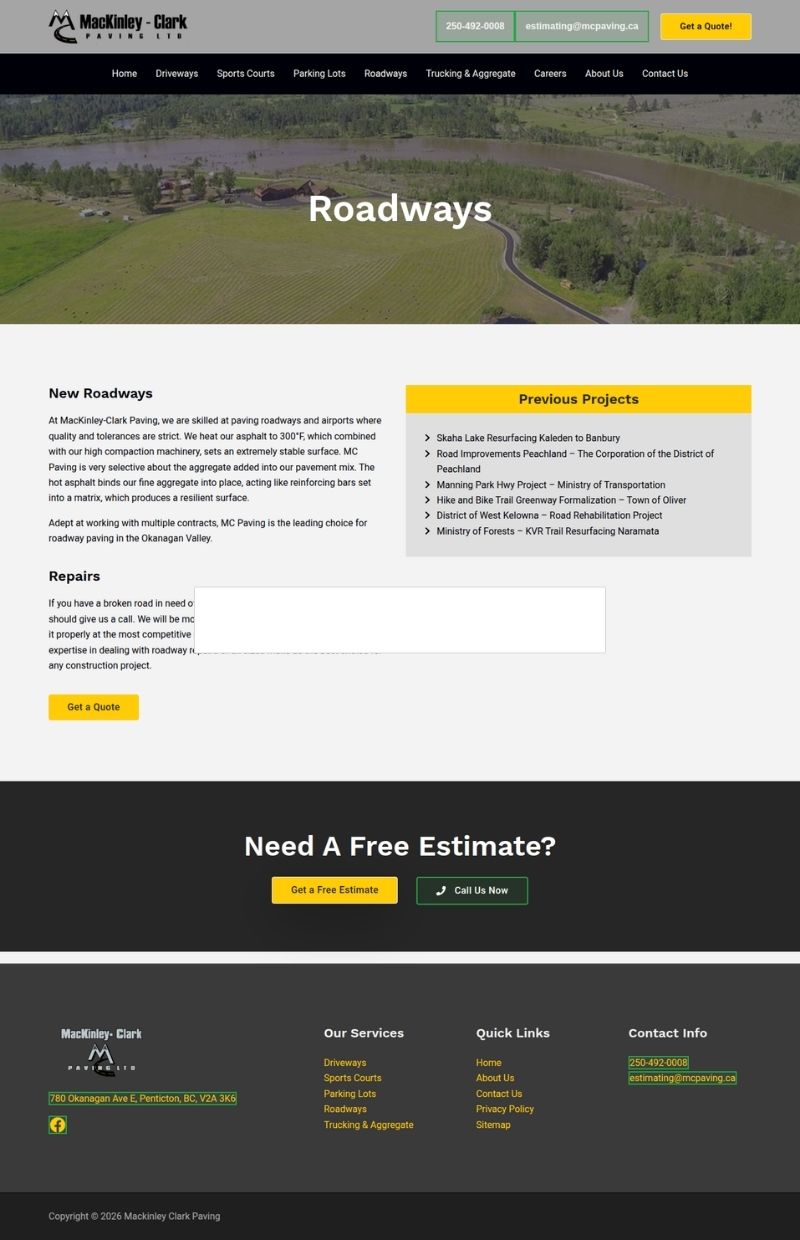 MacKinley-Clark Paving Ltd. offers high-quality paving solutions for various projects. Our professional road surface installation ensures smooth, durable, and resilient pavement surfaces built with precision, advanced equipment, and industry-standard practices for long-term reliability.