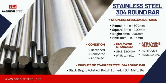 Aashish Steel manufacture a wide range of Stainless Steel 304 Round Bar in India, understanding your specific needs and applications for which you require these materials. We assure the quality and durability of all our products that you can acquire at a fair price. Our products not only sell well in the domestic market, but also cover various overseas markets.