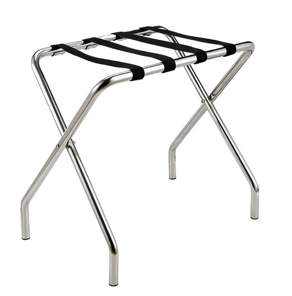The Stainless Steel Luggage Rack is a practical storage solution designed for hotels, offering a sturdy frame to keep luggage secure. Its foldable design allows for convenient storage when not in use.