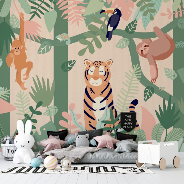 Bring the wild into your space with our tiger wallpaper. This stunning animal wallpaper captures the majesty of tigers in their natural habitat, creating a bold statement in any room. Perfect for those who love nature, this forest wall mural showcases the beauty of wildlife, blending seamlessly with any decor. Transform your walls into a captivating jungle scene with this vibrant design.