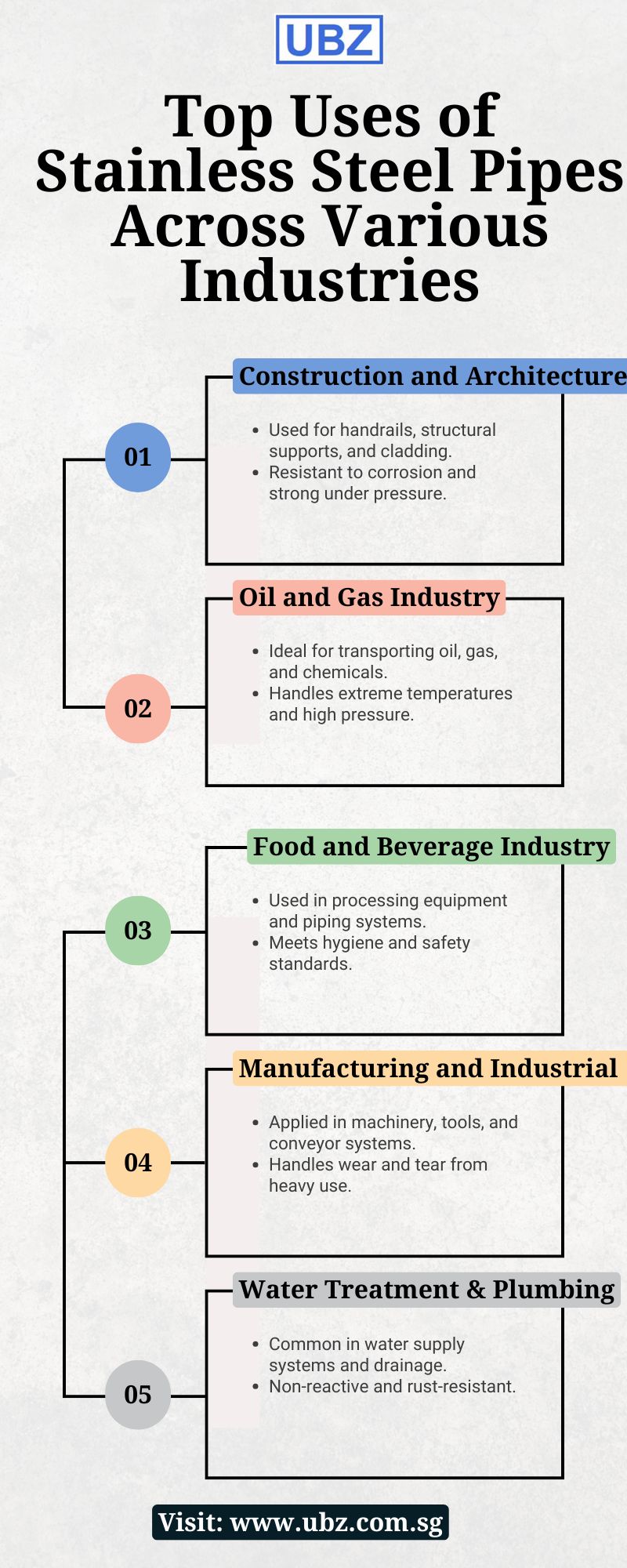 Stainless Steel Pipe is widely used in many industries because it is strong, long-lasting, and does not rust easily. From buildings and water systems to factories and food processing, these pipes are trusted for safe and clean use. At UBZ System Pte Ltd, you can find high-quality stainless steel pipes that suit your business needs. Whether for heavy use or clean environments, UBZ provides reliable solutions for every industry using Stainless Steel Pipe.