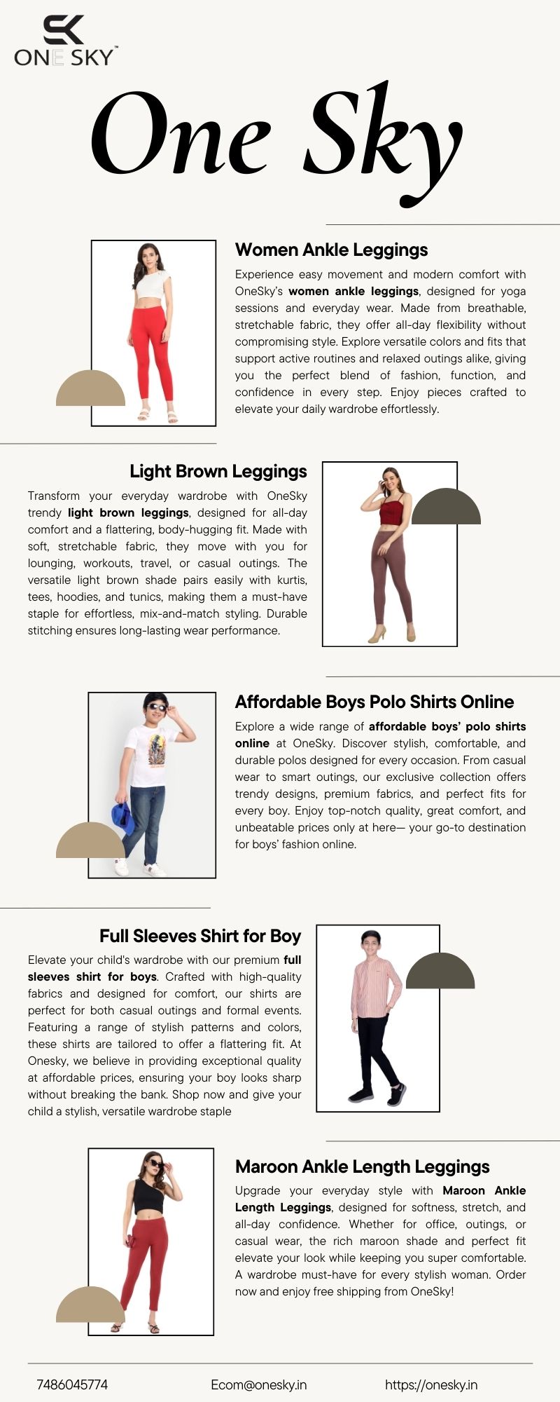 Transform your everyday wardrobe with OneSky trendy light brown leggings, designed for all-day comfort and a flattering, body-hugging fit. Made with soft, stretchable fabric, they move with you for lounging, workouts, travel, or casual outings. The versatile light brown shade pairs easily with kurtis, tees, hoodies, and tunics, making them a must-have staple for effortless, mix-and-match styling. Durable stitching ensures long-lasting wear performance.