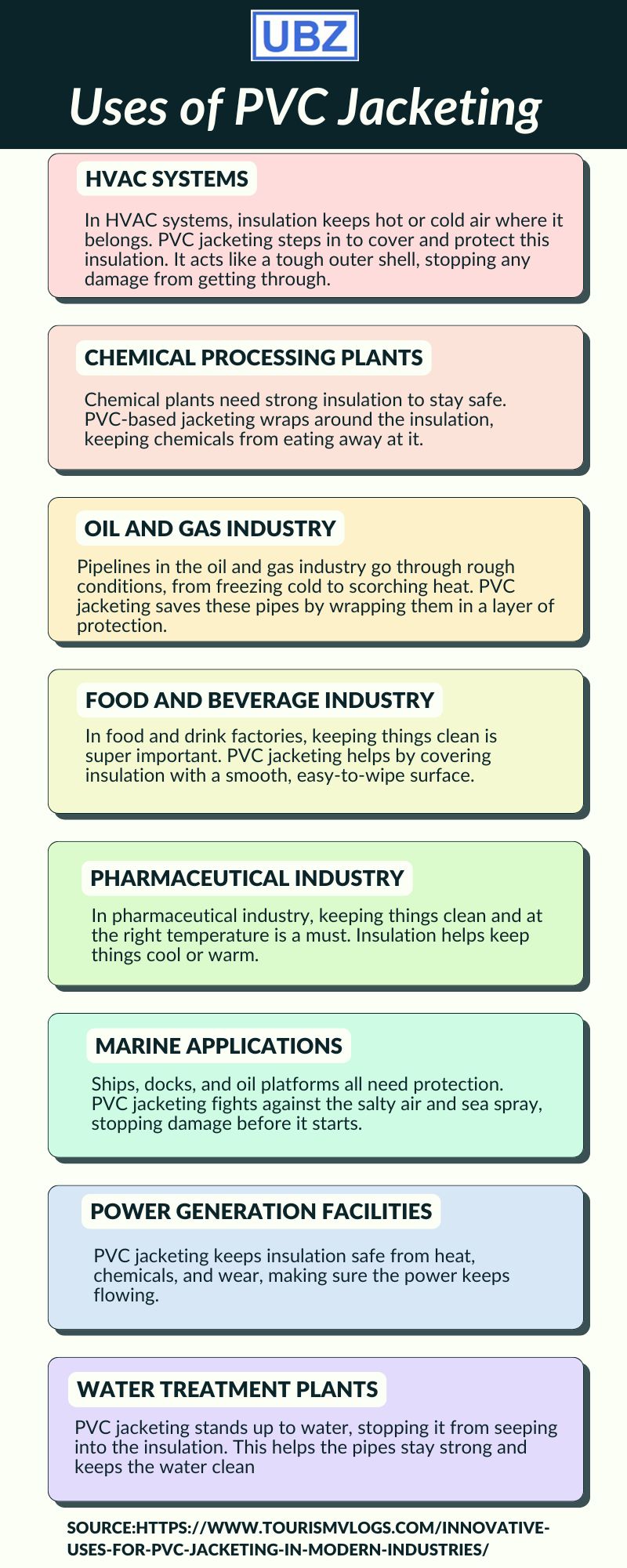 PVC Jacketing is a practical solution for protecting pipes, insulation, and ducts from damage and wear. It prevents moisture buildup, reduces energy loss, and improves the durability of insulation systems. Lightweight and easy to install, PVC jacketing is ideal for both industrial and residential use, offering a neat and professional finish. UBZ System Pte Ltd provides high-quality PVC jacketing solutions tailored to your needs, ensuring long-lasting protection and efficiency.