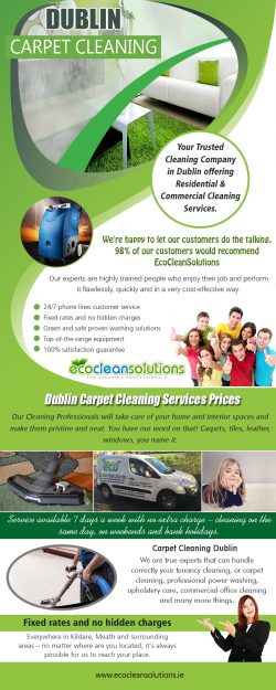 A carpet cleaning service should not only serve residents within the city - it should be able to service companies and offices that want clean upholstery without using harmful chemicals. A company should make use of natural products, so you don't have to pinch your nose for too long after the carpet has been cleaned. Simply put, you get to have Carpet Cleaning Services Prices Dublin without having to smell malodorous fabric cleaners which can adversely affect your health and the environment.