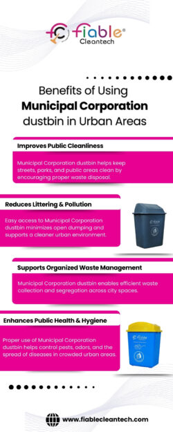 Fiable Cleantech Limited is a leading plastic dustbin manufacturer in India, offering reliable cleaning products like dustbins, cleaning machines, janitorial carts, spin mops, sweeping machines, vacuum cleaners, and pressure washers for hygienic spaces.